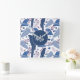 Ara Parrot Blue Tropical Leave Pattern Monogram Square Wall Clock. Ara pattern with tropical leaves in blue and pink colours.