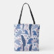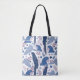 Ara Parrot Blue Tropical Leave Pattern Tote Bag. Ara pattern with tropical leaves in blue and pink colours.