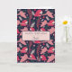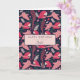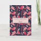Ara Parrot Pink Tropical Leave Pattern Birthday Card. Ara pattern on dark blue background with tropical leaves and flowers in green, red and beige colours. Happy birthday text and name on the front - add your name. Add your message inside or erase it.