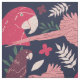 Ara Parrot Red Blue Tropical Pattern Fabric - Large scale. Red and pink ara pattern on dark blue background with tropical leaves in green, red and beige colours. Great for parrot lovers and parrot owners. Find patterns in small scale in the collection below.