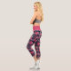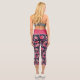 Ara Parrot Red Pink Drawing Tropical Leave Pattern Leggings. Ara pattern on dark blue background with tropical leaves in green, red and beige colours. Hand-drawn illustration.