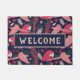 Ara Parrot Red Tropical Pattern Welcome Doormat. Ara pattern on dark blue background with tropical leaves in green, red and beige colours. Great for parrot lovers and parrot owners. You can add your text. Is also available without the text - check the collection below.