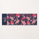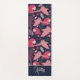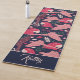 Ara Parrot Tropical Pattern Drawing Monogram Name Yoga Mat. Ara pattern on dark blue background with tropical leaves in green, red and beige colours with a name in pink script. Great for parrot lovers and parrot owners. Add your name or monogram.