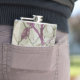 The flask itself is fine. It’s a cheap flask, obviously bought in bulk, however am prepared to overlook that. Given that it is a personalized item, I would have liked to have seen gift boxing instead of the generic packaging. Terrible printing, and/or quality. It’s a cheap, tacky vinyl. It is not cut straight and is also applied in a way that it is overhanging the bottom, causing the glue to catch on items and it will eventually roll and tear, damaging the wrap.