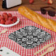 Paper Plates in an arabesque, geometric, mosaic tile pattern in black and white
