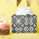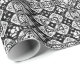 Wrapping paper in an arabesque, geometric, mosaic tile pattern in black and white