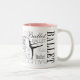 The arabesque is considered by many to be the most beautiful pose in ballet. Here is a design that celebrates the arabesque and ballet in simple elegance -- in black and white -- but this version has just a touch of ballet pink. The wider version of the design just for mugs wraps around all the way. This is a wonderful mug for a young aspiring dancer or a ballet teacher. This item is customisable with option to add your own text and/or image for personalisation. Simply click on "Customise it!" button to get started on the editing process. www.Gifts4Dancers.com