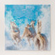 Dashing through the snow as Arabian Horse hair flows, a small horse army bullets towards mountains of blue as geometric flakes melt off the manes of Gods. Baby sky blue colors cover the crystalline pine tree forest.