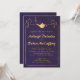 This wedding invitation has beautiful purple and gold colours that are vibrant and really bring out the theme of the card. The card has an outline of a city scape with a golden magic lamp in the centre with swirls coming out. Very beautiful invitation for a wedding invitation announcement.