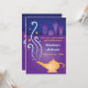 A fun Arabian nights magic lamp invitation. In the background there's a wonderful Arabian cityscape and a night backdrop. Great for a birthday party or other events.