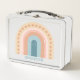 Time to get ready for school, and what better way to do that than with a personalised lunch box! Make your child happy with this cheerful Arabian Nights Boho rainbow lunch box. Get one for yourself and bring your personalised lunch box to work. Everyone will know who it belongs to, so no one will mistake it for their lunch. This lunchbox can be customised with a name or short phrase. The colours of the rainbow are tan, blush, pale pink, and soft blue. Stars included.