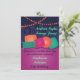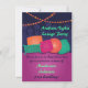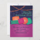 A fun and colourful Arabian Nights lounge invitation that is great for birthday and hookah parties and other celebrations. This design is fun and colourful with pink, teal, blue and orange. It consists of a design with pillows on a lounge cushion and strung lights overhead. In the background is a simple Arabic cityscape.