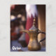 A coffee pot in front of a Qatari flag in Doha's popular Souq Waqif. A coffee pot symbolises welcome throughout the Arab world.