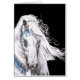 Done in pencil and coloured pencil on black background. White Arabian Horse with blue reigns.