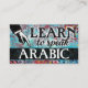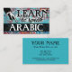Colourful arty Learn To Speak Arabic business cards in turquoise, aqua, red, yellow. Arabic language Instruction business cards.