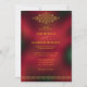 This elegant and stylish wedding invitation features graphic elements in an Arabic/Indian style. It is fully customisable, with graphics and text in gold and a red and black blurred background.