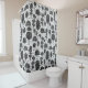 A shower curtain with an attractive original pattern made up of hand drawn stylised trees on a spotted background meant to represent flowers on grass. The pattern can also be further customised e.g made larger or smaller and the background colour can also be changed.