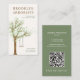 Arborist QR Code Business Card. Whimsical tree art with leaves shaped as hearts and a swing hanging from the tree branch symbolising the love and care with which your tree business approaches tree and plant health. Easy to personalise templates front and back of the card. QR code on the back of the arborist card.