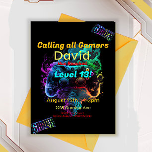Glow Gaming Party – Neon Video Game Birthday Invitation
