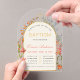 Arch Girl Baptism Gold Cross & Wildflowers Floral Acrylic Invitations