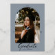 A 2 in 1 card to announce your graduate and invite to celebrate your child's graduation. Featuring a geometric arch framing the picture combined with a modern brushed style typography over a blue background with touches of real silver foil. On the back fill out all the information for your celebration. If you would like to use only the front to announce the graduate. Go to "Edit this design" and delete all information on the back. Need help or additional pieces? Please contact me using the contact button below.