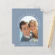 Elegant and budget-friendly dusty blue elopement or private wedding announcement and reception invitation. The front features your wedding day photo in an arch frame and "Happily Ever After" in elegant white typography. Add your first names, wedding date and location. On the reverse, personalise your announcement and invitation and add your names in a signature-like script.