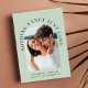 Modern casual light sage green wedding invitation featuring your photo in an arched frame, "Nothing Fancy Just Love" in elegant typography and your first names, wedding date and location. On the reverse side, personalise your invitation in simple typography.
