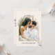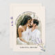This vintage-inspired whimsical purple wildflower wedding save the date is appropriate for a contemporary event. This arrangement of plants surrounds purple and white wildflowers.