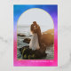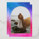 This modern holiday card features a single, vertical photo framed within a beautiful real foil arch. The background has a rich, painted texture in pink blue colours. Personalise this flat card with a custom greeting, script text, name, year and vertical photo on the front. Select real gold foil, silver foil or rose gold foil. Choose between a wide array of paper types. Select the rectangular shaped 5" x 7" card or add a dye cut border shape. Matching items are available. Perfect for a Christmas, holiday or wedding photo card to share with family and friends.