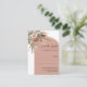 A white background, with an antique rose coloured arch frame, adorned with muted, earthy roses, eucalyptus greenery, and pampas grass. Personalise and add the reply by date.