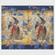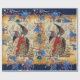 "Joy ,Peace,Love " Elegant,classic, bright and merry Christmas design on parchment with antique Florentine floral motifs and a shiny 3D blue sapphire gemstone elaborated from Oriental angel miniature 1540 by Hosein Naggash.
