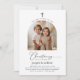 A modern, minimal joint Christening Invitation featuring an arched photo and the word 'Christening' in a calligraphy style font. Please note that you cannot change the 'Christening' word but you can edit all of the other text in this design. You can change the colour of it or you can delete it and replace it with a new text box if you prefer.
