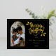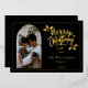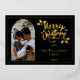 Arched Photo Merry Christmas and Holly on Black Fo Foil Holiday Card