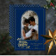 Arched Photo Merry Christmas and Holly on Dk Blue Foil Holiday Card