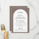 Present your wedding day feast with our elegant arched wedding reception menu! This beautifully coordinated menu features the same sophisticated arch shape design as your suite, creating a cohesive and polished look for your table settings. Your personalised dinner details, from appetizers to desserts, are clearly presented in a classic script font, ensuring your guests can anticipate and enjoy every course. This custom wedding menu is the perfect detail to enhance your reception decor and a lovely keepsake from your special day.