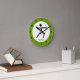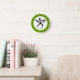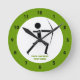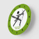 Archer with his bow black, green archery round clock that displays a minimalist icon of a black silhouette of an archer and your text on white background with green border. The perfect gift for the archer or toxophilite in your life.