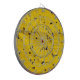 Archery target close up with many arrow holes in gold red blue and black