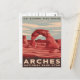 A vintage-style postcard showcasing Delicate Arch, a iconic natural sandstone arch in Arches National Park, Utah. The park offers stunning landscapes, hiking trails, and scenic views for outdoor enthusiasts.