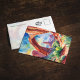 This postcard features a watercolor portrait of Arches National Park in Utah.