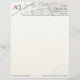 Give your firm a professional edge with this architect letterhead, designed with clean blueprint-inspired details. The top corner features your company name, contact information, and monogram in a structured layout, while subtle diagonal lines and a faint floor plan motif in the corner add an architectural touch without distracting from your content.