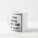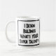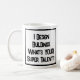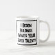 Funny slogan on a mug that says "I Design Buildings. what's YOUR super talent?". Mug for an Architect. Black and white bold text.