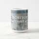 The mug is adorned with a detailed blueprint pattern, representative of architectural plans. The phrase is prominently displayed, offering a light-hearted and truthful statement about the profession.