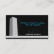 Professional 2-sided architectural engineering business cards with a basic skyscraper perspective drawing over black with blue & white text with a ruler design on the bottom of both sides. NOTE: Although the ruler at the bottom is closely designed to appear real, the measurements may not be 100% accurate to a real ruler because of slight printing/cropping variations.