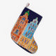 Architectural seamless border pattern on a dark bl small christmas stocking