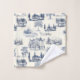 Navy and crème toile pattern of my own design. The individual images are historic American homes drawn in the 18th century, courtesy of New York Public Library public domain collection.