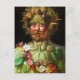 Arcimboldo Rudolf II postcard. Oil on panel from 1590. Giuseppe Arcimboldo was a remarkably unique painter who was famous during his time for his wild portraits composed of fruit, vegetables, fish and flowers. Rudolf II depicts the Habsburg emperor as Vertumnus cleverly utilising gourds, pears, grapes, cherries, figs, plums, lettuce, asparagus and flowers. A fun and intriguing work for fans of Arcimboldo, Vegetable art, and late baroque paintings.