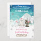 Winter, arctic animals, girl 1st, first birthday invitation.