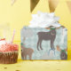 Features an all over pattern of painted illustrations of Arctic animals wearing knit winter hats with illustrations of polar bears, reindeer, moose, puffins and Arctic foxes.