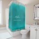 Arctic ice inspired, modern, elegant frosty glittery, gradient glam metallic teal colour background, luxury feel shower curtain by PiccoGrande featuring easily editable Monogram, Script Name, and custom text.