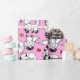 Arctic foxes, pouncing and playing with butterflies, on a pink background.